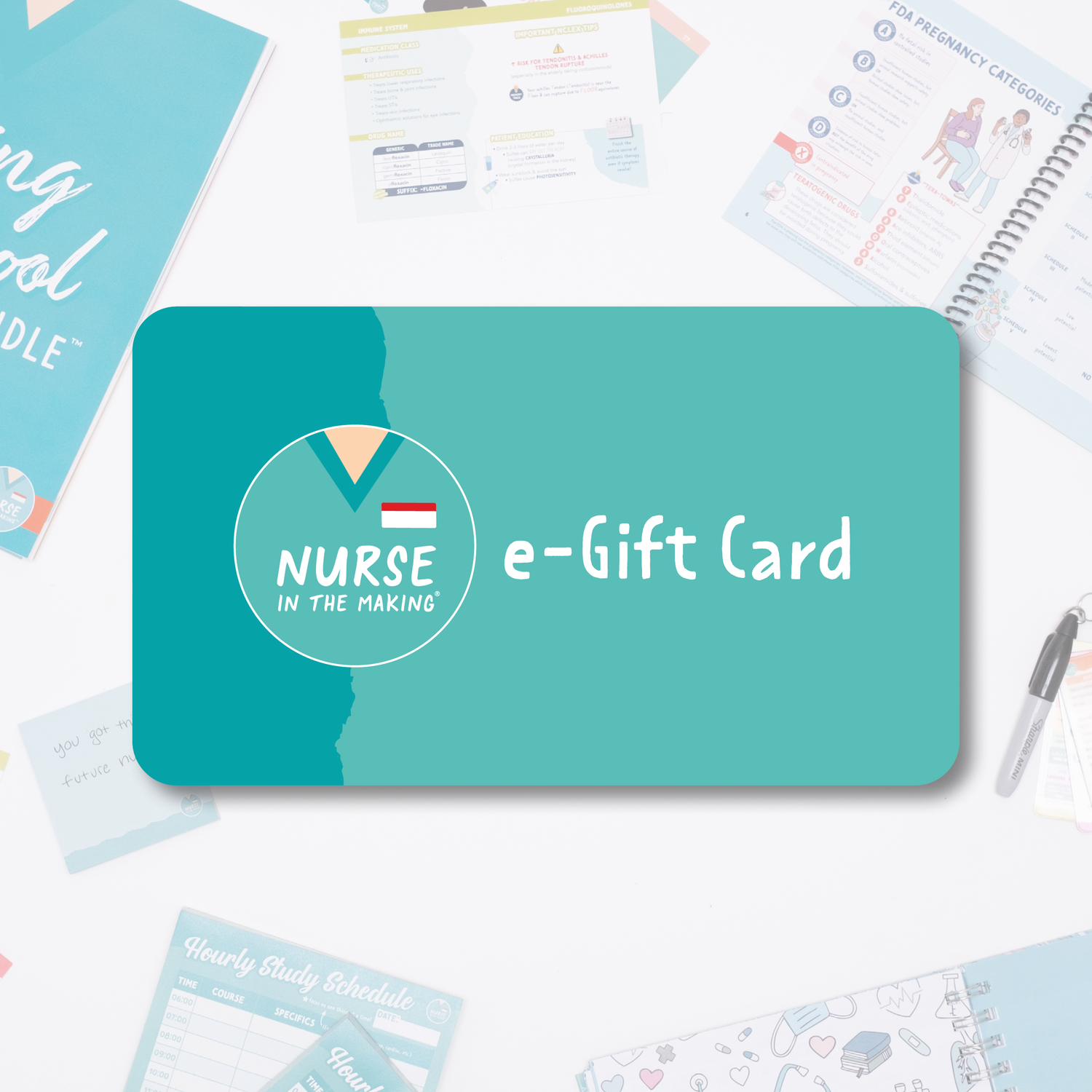 Give the gift your future nurse will love! The NurseInTheMaking e-Gift Card can be used on any products the store.
